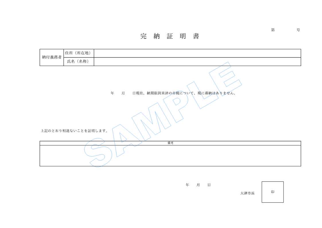 - 申請日時点で大津市税に滞納が無いことを証明する書類です。