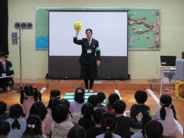 保育園や幼稚園などで交通安全カンガルー教室を実施しています(令和7年度)