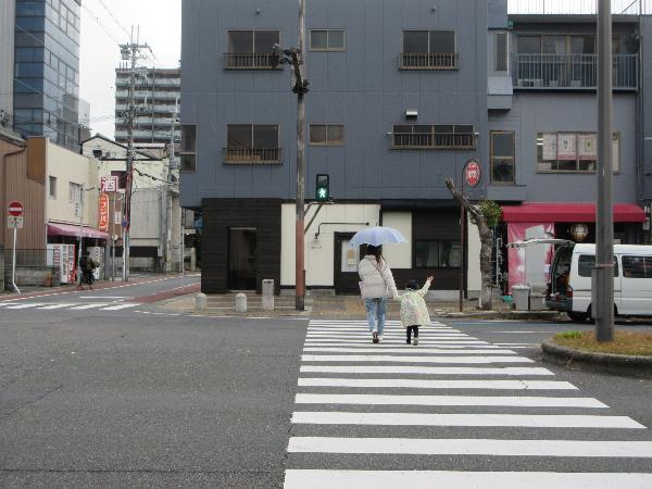 パネル絵やDVD鑑賞で交通ルールを学んだ後、実際に周辺道路を歩きました。歩道でも広がらず、壁側を歩く事を学びました。三つ目信号の色を確かめて、安全確認してから横断歩道を渡る事ができました。