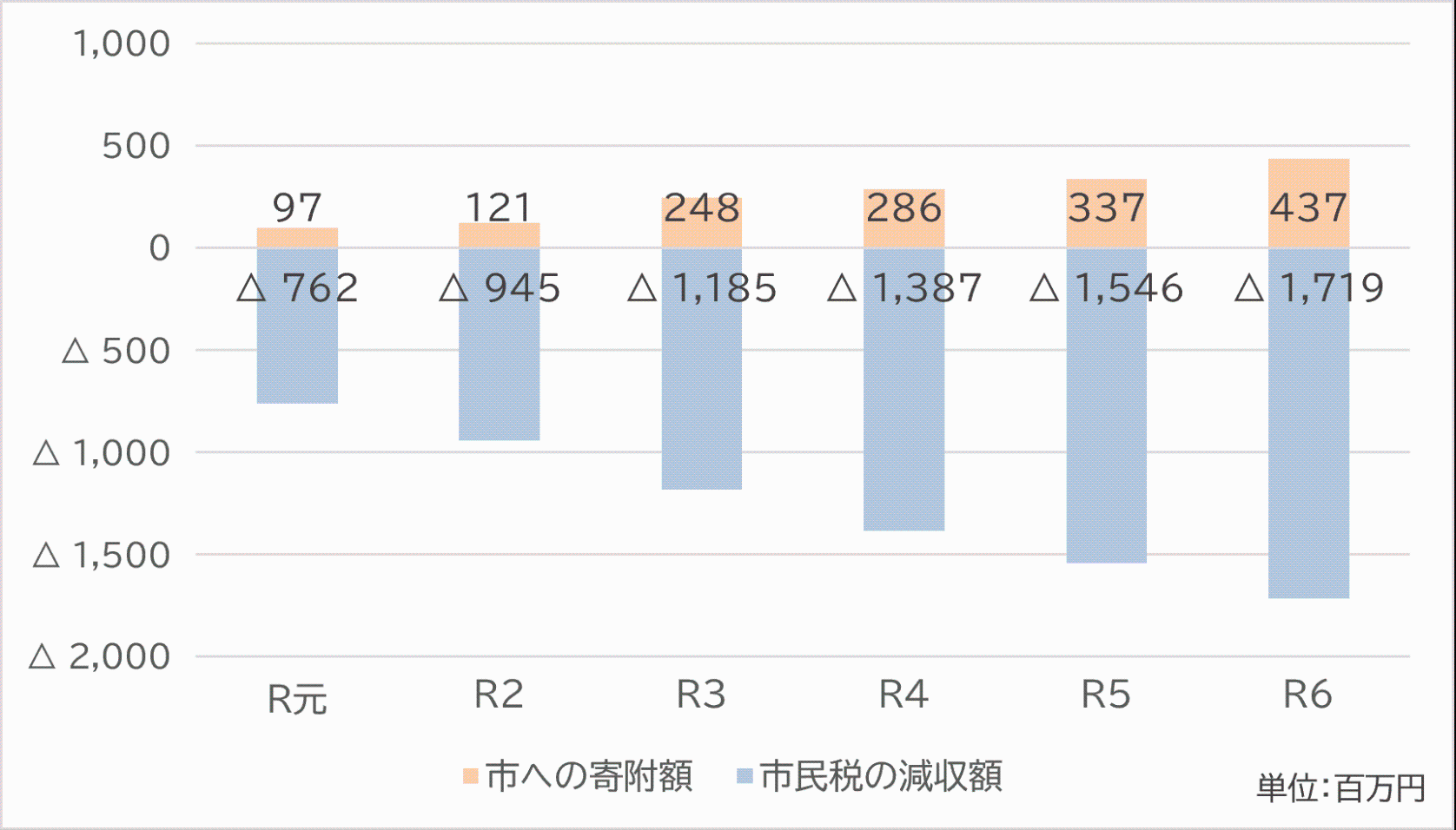 ふるさと納税により市税が流出しています