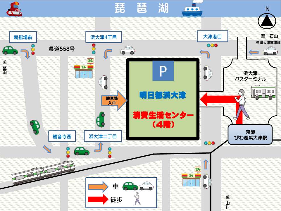 - 車でお越しになる場合は、明日都浜大津駐車場をご利用ください。