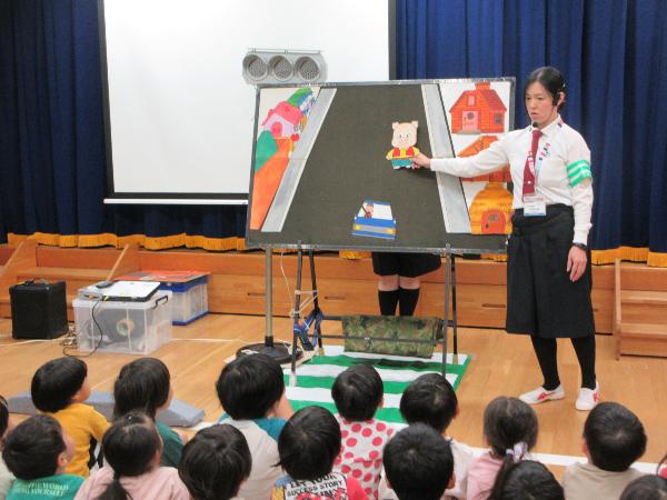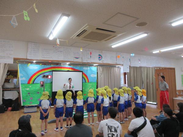保育園や幼稚園などで交通安全カンガルー教室を実施しています(令和7年度)