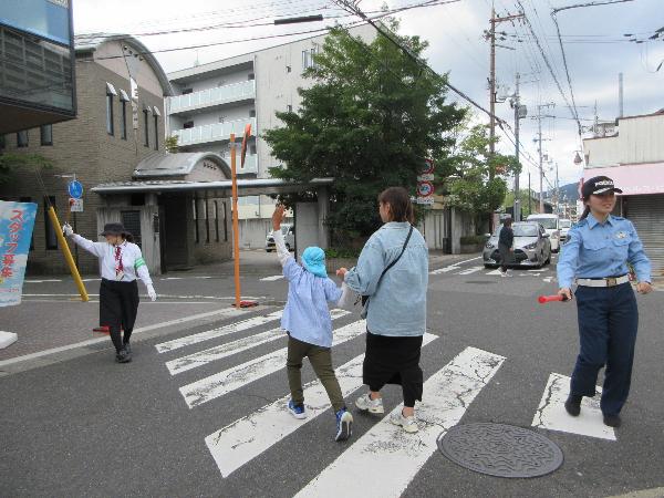 パネル絵やDVD鑑賞をして交通ルールを学びました。保護者にもご参加いただき、保護者向けの交通安全教室も行いました。模擬信号を使った歩行訓練を行い、保護者と手をつなぎ、しっかり周りの安全を確かめて横断歩道を渡る事ができました。