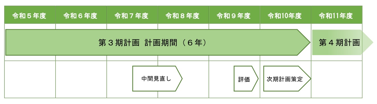 令和5年度から令和10年度までの6年間を計画期間とします。