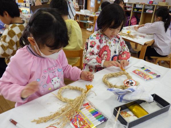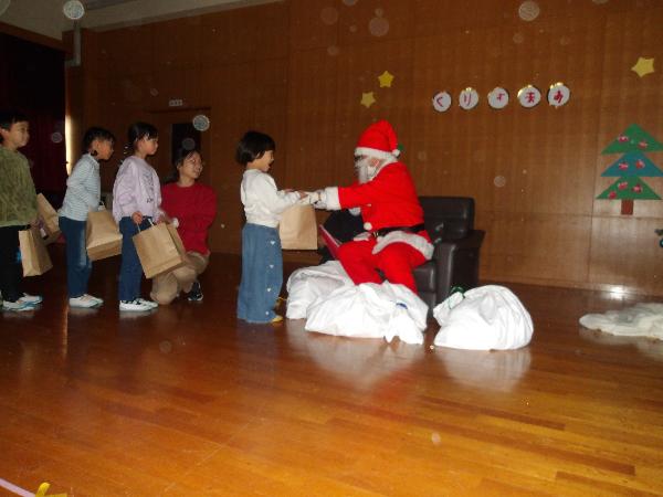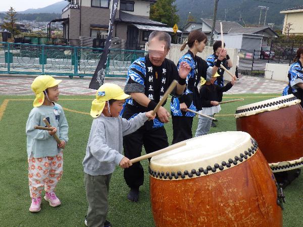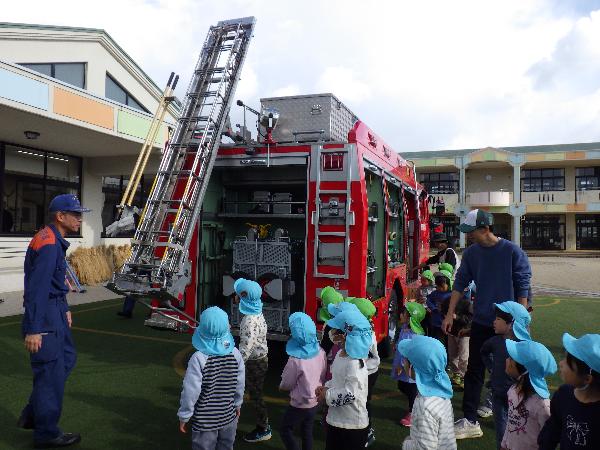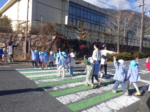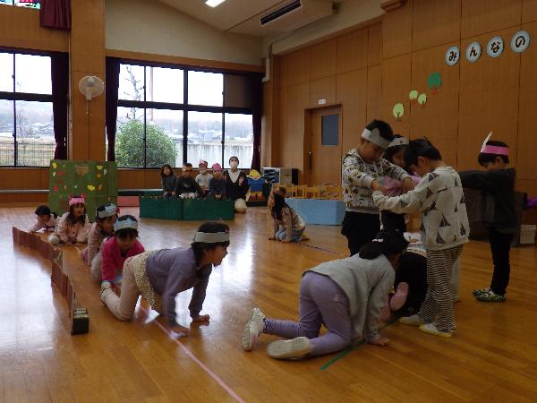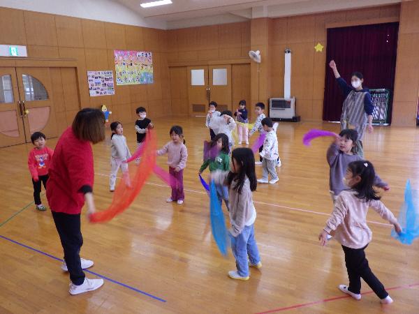 大津市立志賀北幼稚園 しがきたアルバム 令和7年度 更新日:2026年01月07日 12月 2次避難場所である小学校まで車に気をつけながら速やかに避難する練習をしました。校長先生に出迎えてもらい、その後は広い校庭で遊びました。 落ち葉をいっぱい集めて遊びました。「ふわふわで気持ちいいね。」「私もいれて。」あっという間に落ち葉のお家は満員になりました。 5歳児の生活発表会。自分たちで考えた「チュッピーのたまごを取り戻せ」の劇遊び。一人一人が自信をもち張り切る姿が見られました。 5歳児に刺激をもらい、4歳児も好きなものになって動いたり、やりとりをしたりしておはなし遊びを楽しんでいます。 「ウェルハピネス体操」長屋先生と一緒に遊びました。カラフルなシフォンを使って、いろいろな体の動きを楽しみました。 もうすぐクリスマス。「雪がいっぱい降るといいなぁ。」たくさんおしゃべりしながら絵の具のスタンプ遊びをしました。 幼稚園にサンタさんが来てくれたよ。インタビューしたり、プレゼントをもらってみんな大喜びでした。 大根の収穫。虫が来ていないか様子を見たり、水やりをしたりして世話をしてきました。「どうやって食べようか。」と話が弾みました。 しめ縄飾りづくり。来年の干支の午をかいたり、金や紅白の紙を使ってつくりました。良い年が迎えられそうです。 11月 幼稚園に消防車が来たよ。ホースやはしご、様々な道具を見せてもらったり、消防士さんの仕事の話を聞きました。 収穫したお米を牛乳パックを使って脱穀しました。「力がいるな。」「難しいけど、できた!」お米づくりの大変さを感じる機会になりました。 今月の誕生会に野村太鼓さんが来てくださいました。全身に響く太鼓の音色やパフォーマンスに釘付けになりました。 荒川運動公園へ落ち葉拾い。「もうすぐ焼き芋。いっぱい集めよう!」落ち葉を空に放り投げて「落ち葉のシャワー」も楽しかったね。 PTAや地域の方にもお世話になり焼き芋をしました。幼稚園のみんなで熱々のお芋をいただき、笑顔いっぱいの一日になりました。 5歳児が比良保育園さんと一緒に小松小学校へ。1年生が考えた「秋のおもちゃランド」でたくさん遊ばせてもらいました。 10月 地域の方のご好意でお芋掘りをさせてもらいました。大きなお芋は友達と力を合わせて夢中になって掘りました。 3歳児は土嚢袋で育てたお芋を掘りました。「お芋でてくるかな。」「お芋見えた!」と小さな手でワクワクしながら掘りました。 どんぐり拾いのお散歩へ。「こんなにいっぱいすごいでしょ。」どんぐり転がしやごちそう作り、製作遊びに使って遊んでいます。 小雨の中の運動会。バルーンの上で弾む雨粒に子ども達は大喜び。最後はみんなの笑顔と「ポップライス」の技が弾けたよ。 運動会後、保育園の友達とリレーやダンスの見せ合いをしました。お互いに刺激を受けて張り切り、ステキなところを褒め合う姿が見られました。 3歳児、和邇公園へバス遠足。いろいろな遊具で体を動かして遊び、どんぐり拾いもしたよ。「楽しかった。」「また行きたいな。」 中学生のお兄さん、お姉さんが一緒に遊んでくれたよ。絵本を読んでもらったり、歌を聞かせてもらったりして、みんなが笑顔で嬉しい時間となりました。 人権擁護委員、日赤奉仕団の皆さんによる人権教室。人権イメージキャラクターの人KENまもる君とあゆみちゃんも来てくれたよ。自分も友達も大事に仲良くしようね。 朝は体操をして元気に一日をスタートします。「それもいいいね体操」は運動会でも踊ったみんなのお気に入り。今日も「いいね」を見つけよう。 9月 まだまだ暑い9月。みんなで浜遊びに行きました。「来たよ!」「それ!」打ち寄せる波に合わせてジャンプ遊びが始まりました。 幼稚園にたくさんのトンボがやってくる季節になりました。「見て見て。私のトンボ素敵でしょ!」トンボのめがねを覗いて友達と目が合うとにっこり笑顔になりました。 大津市の交通安全指導員の方に安全な道路の渡り方、交通ルールを守ることの大切さを教えてもらいました。4歳児は友達と3歳児は親子で歩行訓練を行いました。 びわこベース見学に行きました。関さんから水辺にすむ生き物の話を聞いたり、実際にカエルやヘビに触れさせてもらったりし、生き物への親しみや興味、関心が膨らみました。 シャボン玉研究所の藤原先生とシャボン玉をつくって遊びました。琵琶湖からの風にのってシャボン玉が膨らむと「見て~。」「すごい!」「きれい!」と歓声があがりました。 志賀北幼稚園の友達の描いた絵がパッカー車にラッピングされお披露目に来てくれました。「嬉しいね。」とみんなでパッカー車を囲んだ後、ゴミ収集の様子を見学しました。 ロープウェイに乗ってびわ湖バレイに遠足。お隣の志賀南幼稚園の友達も一緒に4歳児は様々な遊具で遊び、5歳児は蓬莱山の頂上まで登り楽しい一日になりました。 5歳児がバケツ田んぼで育てたお米