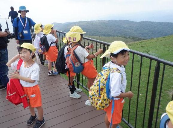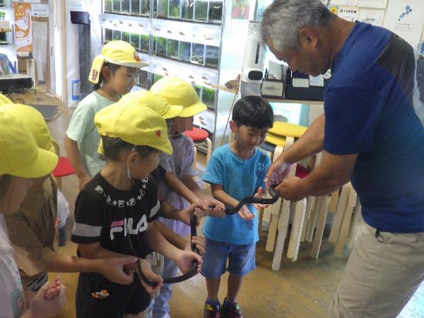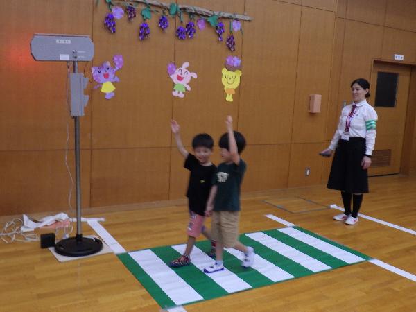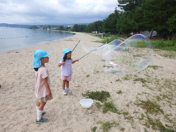 大津市立志賀北幼稚園 しがきたアルバム 令和7年度 更新日:2025年10月03日 9月 まだまだ暑い9月。みんなで浜遊びに行きました。「来たよ!」「それ!」打ち寄せる波に合わせてジャンプ遊びが始まりました。 幼稚園にたくさんのトンボがやってくる季節になりました。「見て見て。私のトンボ素敵でしょ!」トンボのめがねを覗いて友達と目が合うとにっこり笑顔になりました。 大津市の交通安全指導員の方に安全な道路の渡り方、交通ルールを守ることの大切さを教えてもらいました。4歳児は友達と3歳児は親子で歩行訓練を行いました。 びわこベース見学に行きました。関さんから水辺にすむ生き物の話を聞いたり、実際にカエルやヘビに触れさせてもらったりし、生き物への親しみや興味、関心が膨らみました。 シャボン玉研究所の藤原先生とシャボン玉をつくって遊びました。琵琶湖からの風にのってシャボン玉が膨らむと「見て~。」「すごい!」「きれい!」と歓声があがりました。 志賀北幼稚園の友達の描いた絵がパッカー車にラッピングされお披露目に来てくれました。「嬉しいね。」とみんなでパッカー車を囲んだ後、ゴミ収集の様子を見学しました。 ロープウェイに乗ってびわ湖バレイに遠足。お隣の志賀南幼稚園の友達も一緒に4歳児は様々な遊具で遊び、5歳児は蓬莱山の頂上まで登り楽しい一日になりました。 5歳児がバケツ田んぼで育てたお米の収穫をしました。5年生がしていた稲刈りを真似て、先生と一緒に鎌を使って刈りました。この後どうする?みんなで相談中です。 地域の方に分けていただいた芋づるで遊びました。芋づるトンネルをくぐり、芋づるしっぽをつけて鬼ごっこ、縄跳びや電車ごっこもしました。芋ほりが楽しみです。 7月 祖父母参観では、祖父母の方と一緒に笹飾りを作りました。笹は5歳児が近くのお寺に出かけ分けていただいたものです。祖父母の方と楽しいひと時を過ごしました。 広いプールで全身で水に親しみ、心地よさを感じながら遊びました。みんなで水の中を走り水流をつくって遊ぶ「ぐるぐる洗濯機」を喜んで何度もしました。 七夕の翌日、元気村へプラネタリウム見学に行きました。ゴロンと寝転び、夜空の天の川や織姫、彦星を眺めながら星の話を聞かせてもらい興味が膨らみました。 きらきらコンサートで歌や合奏を披露しました。たくさんのお客さんを前に緊張しながらも自分の出番には張り切って音を鳴らしたり、みんなと歌声を合わせ、嬉しそうな様子が見られました。 7月生まれの誕生会のお楽しみにフラダンスを見せていただきました。音に合わせ楽しく踊る姿に引き込まれ、子ども達も自然と体が動いて一緒に踊り始めました。 5歳児に手をつないでもらい、3歳児も浜遊びに出かけました。水の冷たさや裸足で砂浜を歩く感触を楽しんだり、魚や貝がらを見つけて喜んだり、身近な自然の中で心を動かして遊びました。 6月 カップやあみ、バケツなど思い思いの道具をもって、地域の田んぼへ生き物探しに行きました。 せっけんクリームをスポンジに塗ってケーキ作り。水の量を加減したり、飾りつけを工夫したりして遊んでいます。 「私も。」「僕も。」とみんなで並んで寝転び、びりびりに破いた新聞を上から掛けてもらって大喜びの子ども達でした。 ひんやりと冷たい土粘土。足で踏んでジャンプしたり、手でつまんだり、丸めたり、ひっぱったり…全身を使って感触を楽しんでいます。 園庭で水遊び。シャワーの水が気持ちいいね。ペットボトルやバケツに集めたり、手や足で受けたりして、どんどん水に親しんでいます。 透明パネルに泥を手でぬり広げて遊んだり、水をどんどんかけて泥を流す遊びを何度も繰り返し楽しみました。 5月 こいのぼりに向かって「よーいどん!」みんな、元気に大きくなーれ! 砂山に乗り物を走らせて遊んでいるよ。登ったり下りたり、どんどん進むよ! 「行くよ!」「水来たよ!」山の上から水流し。樋を長くつなげて、大成功! 毎月の誕生会ではみんなで誕生児をお祝いします。5歳児はおみこしに乗ってみんなの周りをパレードするよ。 田んぼの土で遊んだよ。5年生の田植えの様子見て、5歳児はバケツ田んぼでお米を育てることにしました。 ゴミ収集車が幼稚園にやってきたよ。運転席に乗せてもらったり、ごみが回収される様子を間近に見せてもらいました。 4月 幼稚園バスが到着。朝の登園の様子です。「おはよう!」元気な挨拶がとっても気持ちいいです。 『のびのびランド』の桜の下で遊んだよ。『のびのびランド』は9時30分~16時30分の間、未就園親子の方に開放しています。 今日も幼稚園のローラーすべり台は大人気。友達と一緒に何度も滑って楽しいね。 関連リンク 大津市立志賀北幼稚園 この記事に関するお問い合わせ先 教育委員会 志賀北幼稚園〒520-0513 大津市荒川880電話番号:077-592-1178ファックス番号:077-592-8009志賀北幼稚園にメールを送る